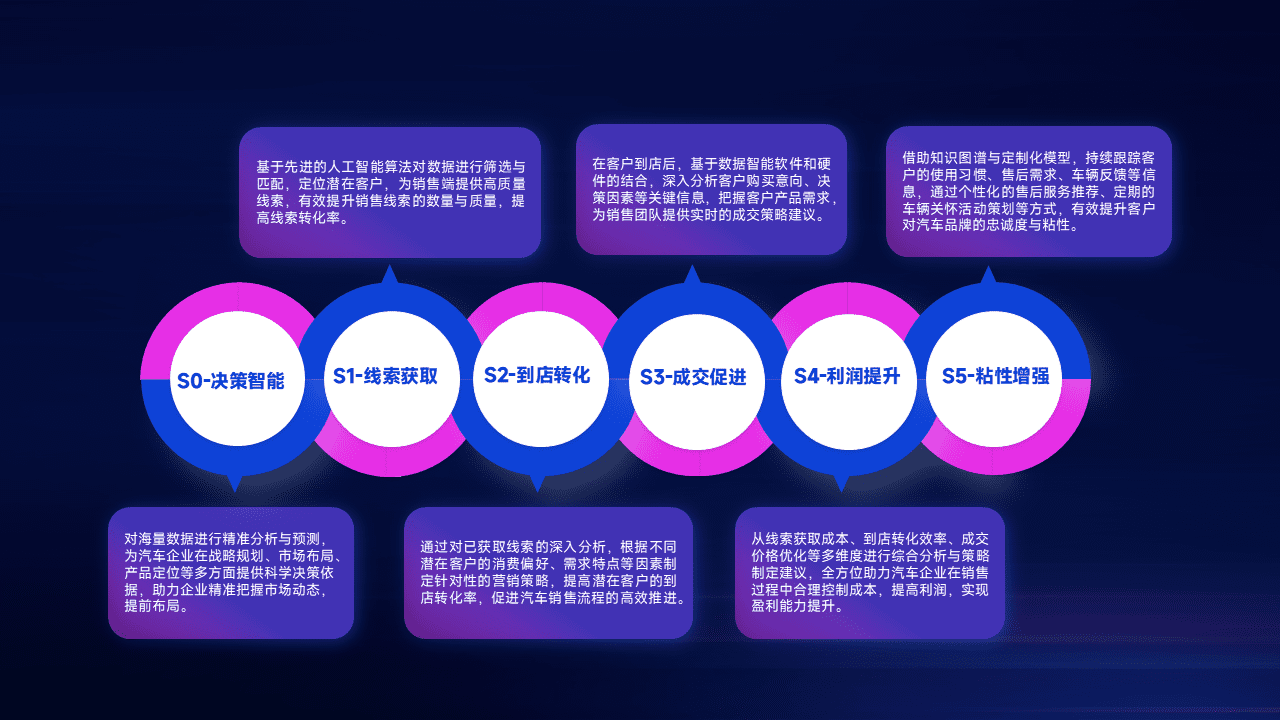 通过拓宽潜在客户来源、、优化线索分配并提高到店转化率,,以增强销售效率。。同时,,,,利用线索数据不断优化分析模型,,有效提升转化率,,,扩大营销影响力。。。。